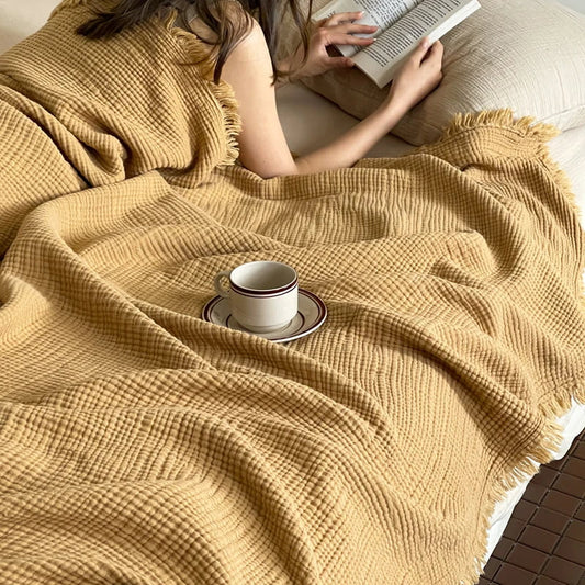 Bahar Red Chenille Blanket Tassel Sofa Cover